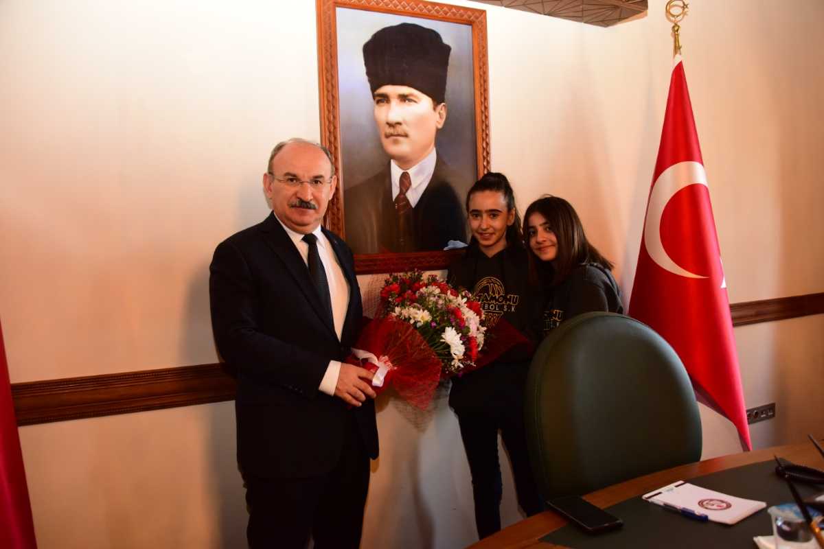 Sayın Valimiz genç sporculara başarılar diledi ve vakıf olarak spora destek vermeye devam edeceklerini, genç sporcularımızın ziyaretlerinden dolayı mutluluğunu belirtti.